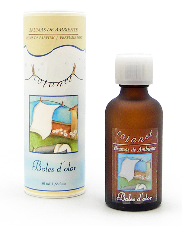 La bruma cotonet de 50 ml está formuladas especialmente para ser utilizados con el nuevo Brumizador de Boles d’olor y convertirse en micro gotas de puro placer olfativo que ambientarán instantáneamente tu hogar. La tecnología de micronización en frío permite que el perfume se perciba con todo su esplendor y sutileza, sin cambios ni alteraciones. Pueden utilizarse también como Concentrado de Perfumes para revitalizar potpourris, para perfumar cerámicas, y en una gran variedad de aplicaciones.