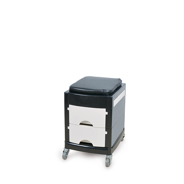 Carrito pedicura con bandeja lateral extraible y 2 cajones. Cojín y ruedecitas silenciosas para un fácil manejo.