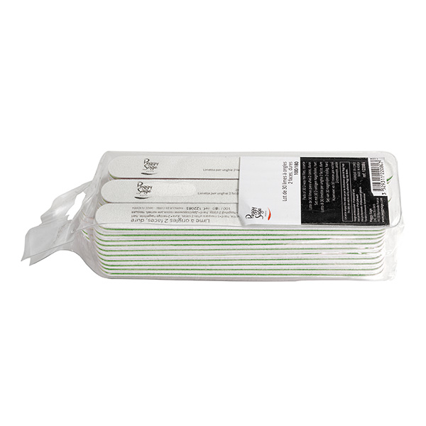 Lote de 30 limas de u’as lavables de 2 caras blanco con grano 100/180 Recomendaciones de uso: El grano de la lima determina el grado de abrasión del esmeril: cuanto menor sea el número, más dura será la lima y, por tanto, más abrasiva. Cuanto mayor sea el número, más suave será la lima y, por tanto, menos abrasiva. Para las u’as artificiales, recomendamos limas con un grano más duro. Para las u’as naturales, es mejor elegir limas más suaves.