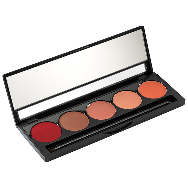 Paleta de 5 tonos cálidos para labios de 1,5 g con una textura suave y sedosa. Seleccionados en una misma armonía, los colores se mezclan entre sí, para crear efectos de volumen u otros colores.
