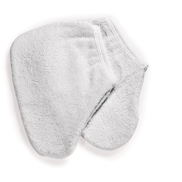 El par de guantes de toalla para pies conserva el calor durante el tratamiento de parafina.